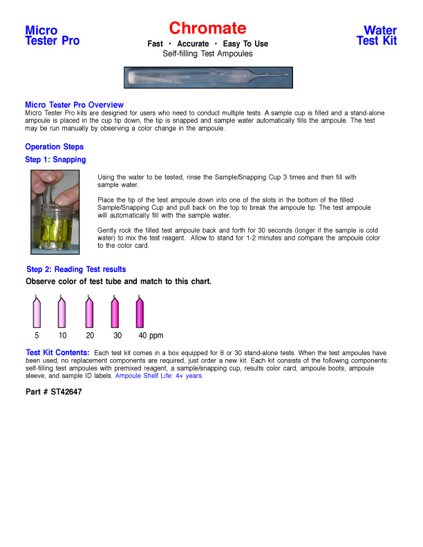 vial for biologic tests. Each kit comes complete and ready to run the test.
